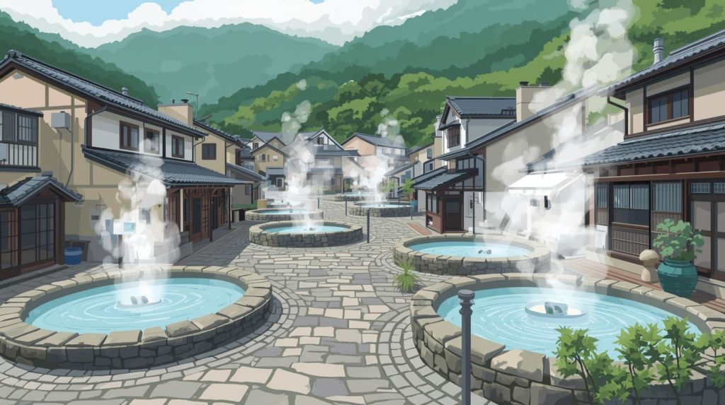初めて訪れると、湯けむりに包まれた温泉街の風景に少し驚くかもしれません。